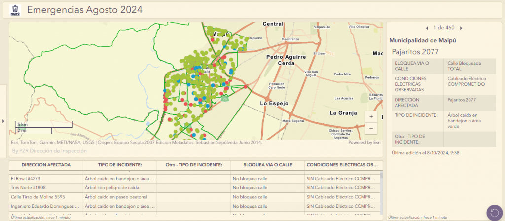 A 10 meses de los vientos que azotaron a la Región Metropolitana y que causaron cortes de luz en varias comunas, Maipú se preparó para las emergencias climáticas. El año pasado, los funcionarios en terreno lograron catastrar los árboles caídos en la comuna en tiempo récord. Ellos se definen como un municipio líder en georreferenciación, que es lo que les ha permitido utilizar una herramienta de respuesta inmediata a los sistemas frontales.