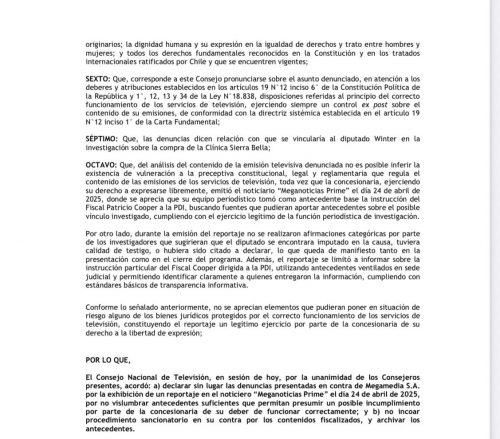 Finalmente, el Consejo resolvió no abrir un proceso sancionatorio contra Megamedia S.A. y archivó los antecedentes.