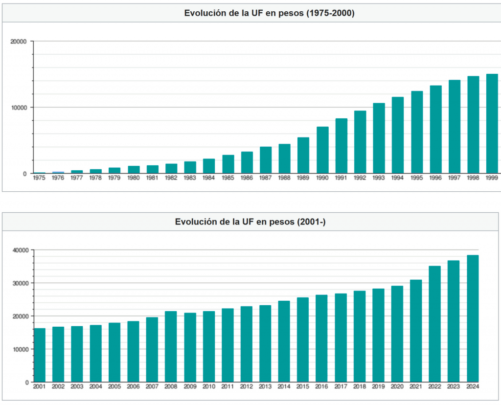 Así, comenzó a operar la UF con un valor de 100 escudos, en ese momento se calculaba trimestralmente. En el régimen militar esta unidad comenzó a entrar en otras áreas como la educación y salud. Poco a poco construyó su camino para terminar siendo la base del sistema financiero que tenemos hoy. Fue recién en 1990 cuando el Banco Central asumió la responsabilidad de calcular su valor de forma diaria.
