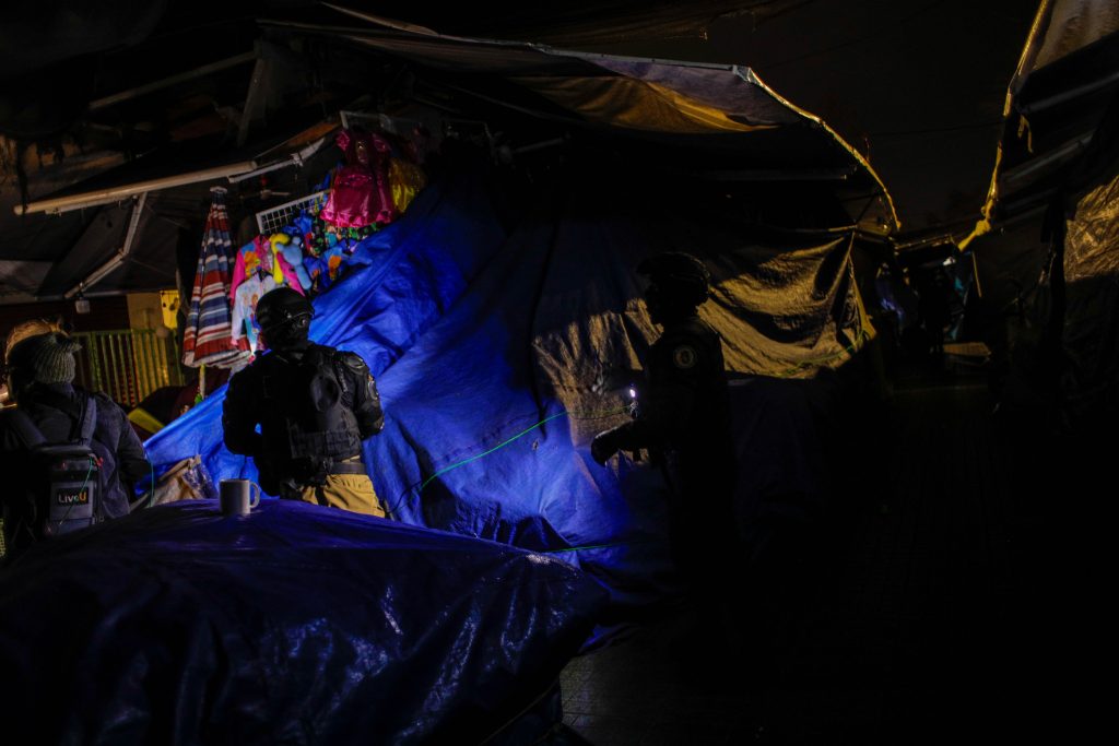 “Estamos trabajando para enfrentar a las cabezas que están detrás del toldo azul, a los que abastecen, a los que trafican drogas. Aquí también está la Fiscalía Centro Norte haciendo un trabajo con la PDI, esto es un trabajo amplio que esperamos que empiece a dar resultados concretos los meses que vienen”, afirmó el alcalde Mario Desbordes.