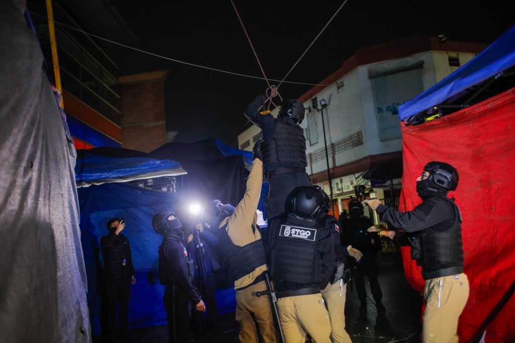 El despliegue realizado en las calles Meiggs, Garland y Campbell contó con la participación de más de 200 carabineros y funcionarios municipales, en el marco de un “plan maestro para enfrentar el comercio ilegal y las mafias que operan en el sector”, según informó la entidad comunal.