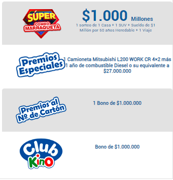 Rekino, los diversos Chao Jefe, Chanchito Regalón y Combo Marraqueta, entre otros, cuyos premios a repartir superan los $6.200 millones de pesos.