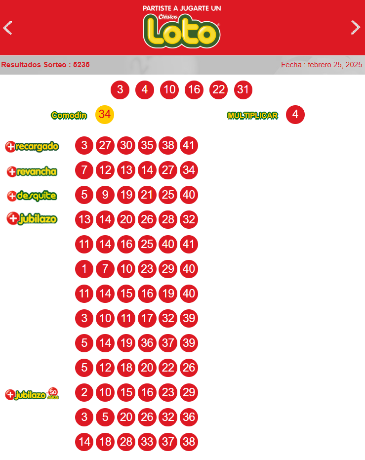 Resultados Loto: sorteo 5235 del martes 25 de febrero