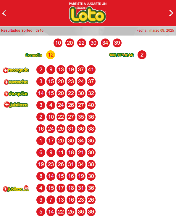 Resultados Loto, sorteo 5240, domingo 9 de marzo: estos son los números ganadores.