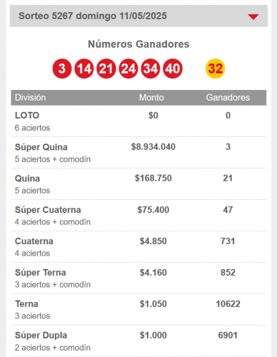 A continuación puedes revisar si eres afortunado y lograste llevarte el premio en alguna de las categorías de Loto. Los números ganadores del sorteo 5267, correspondientes al domingo 11 de mayo, se conocen pasadas las 21:00 horas.