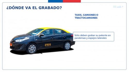 Cabe mencionar que en el caso de vehículos que cuenten con su patente pintada en sus costados (como taxis o camiones), deberán realizar el grabado sólo en espejos laterales y parabrisas.