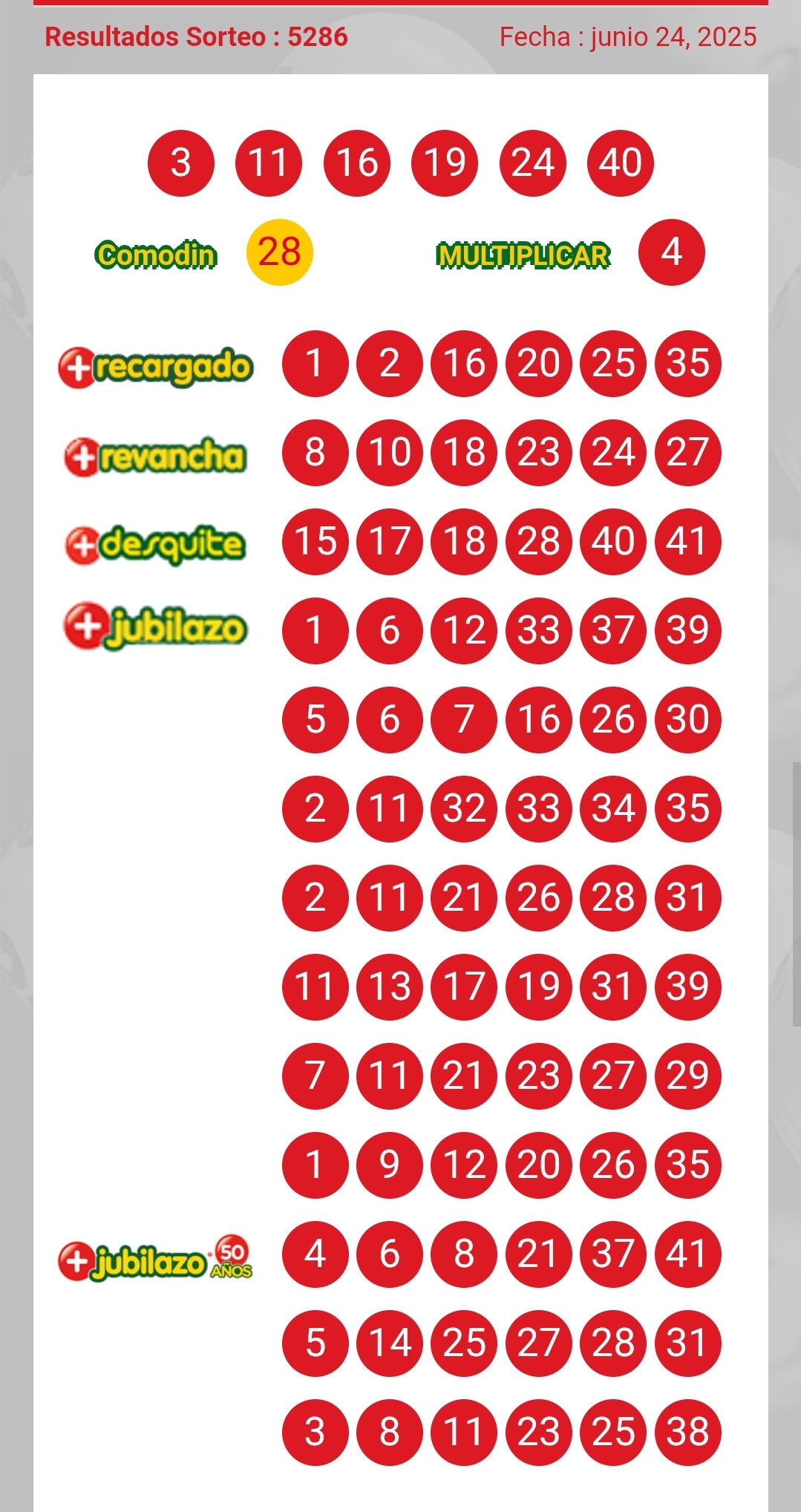 Resultados Loto: sorteo 5286 del martes 24 de junio