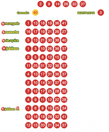 Para determinar la combinación ganadora de Loto, se extraen 6 bolitas de una tómbola que contiene 41 numeradas. Estos números son correlativos del 1 al 41. La 7ª (séptima) será la denominada “Comodín”.