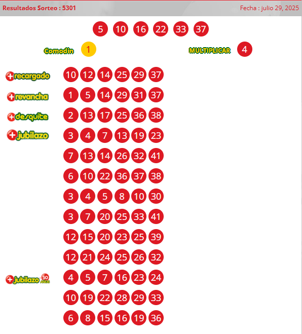 Resultados Loto: sorteo 5301 del martes 29 de julio