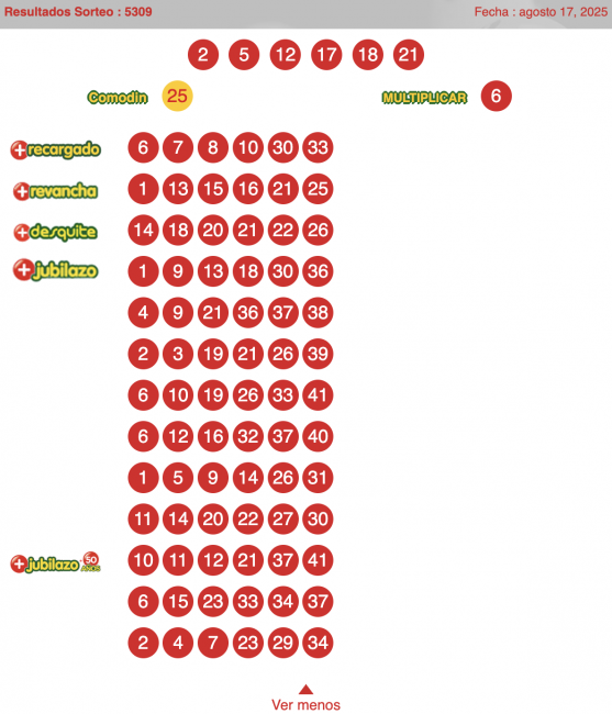 Resultados Loto: sorteo 5309 del domingo 17 de agosto