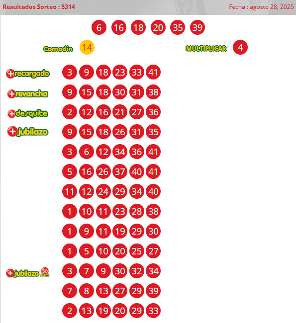 Resultados Loto: sorteo 5314 del jueves 28 de agosto