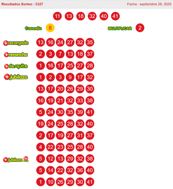Revisa los números ganadores del sorteo 5327 del domingo 28 de septiembre: