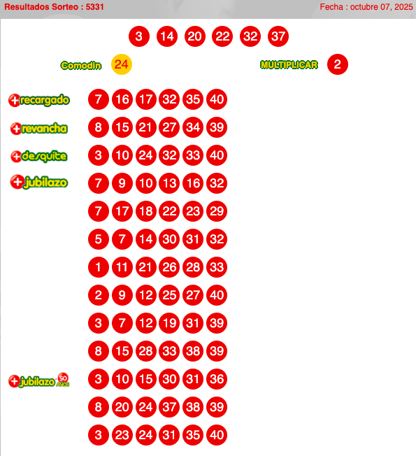 Estos son los números ganadores del sorteo 5331 del Loto: