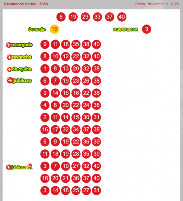 Resultados Loto: sorteo 5359 del jueves 11 de diciembre