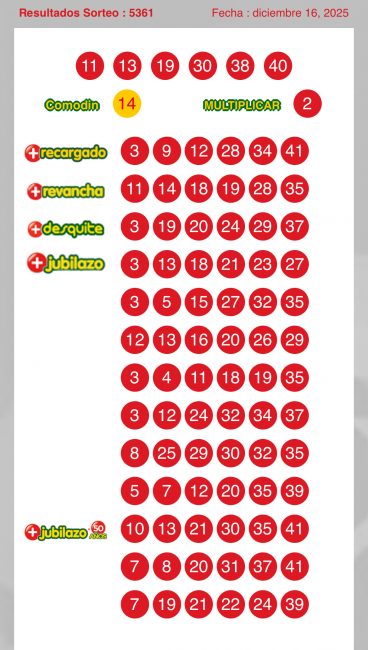 Resultados Loto 5361: estos son los números ganadores de este martes 16 de diciembre