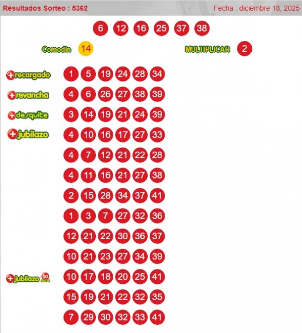 Resultados Loto 5362: estos son los números ganadores de este jueves 18 de diciembre
