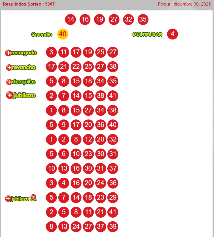 Resultados Loto 5367: estos son los números ganadores de este martes 30 de diciembre