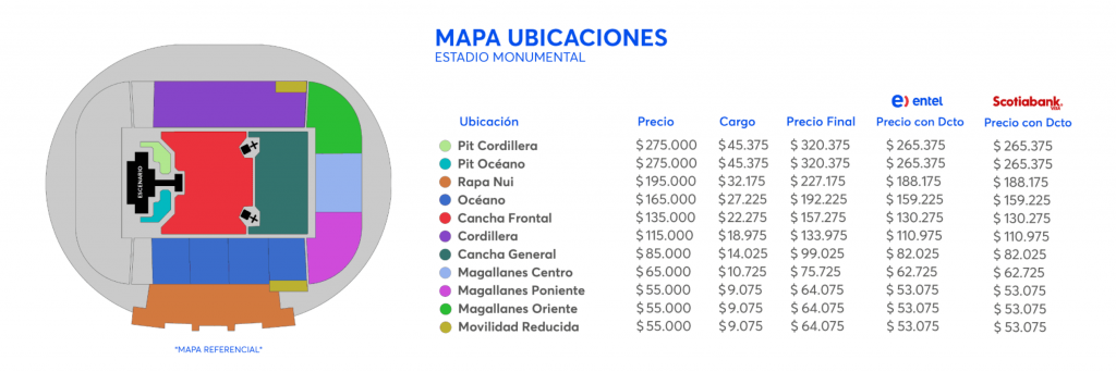 Los precios de los tickets van desde 53 mil a 320 mil pesos.
